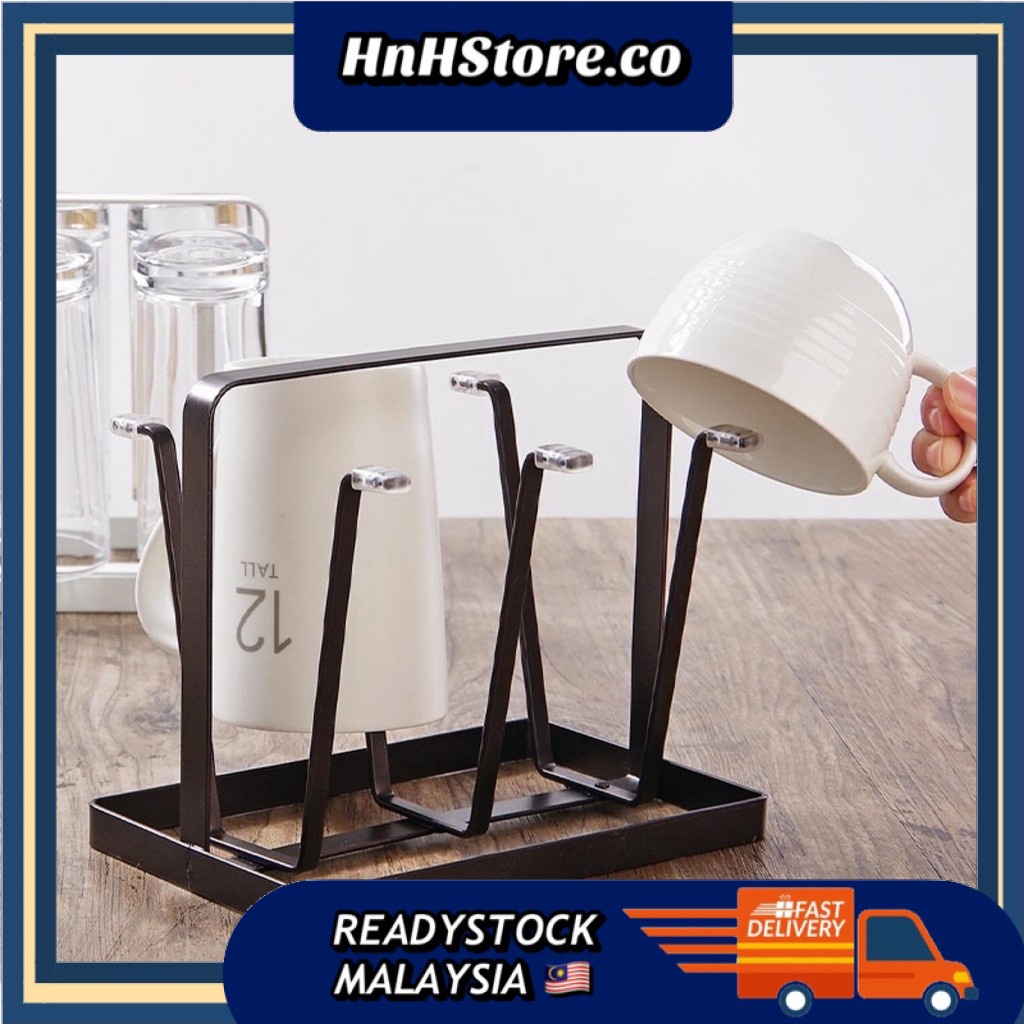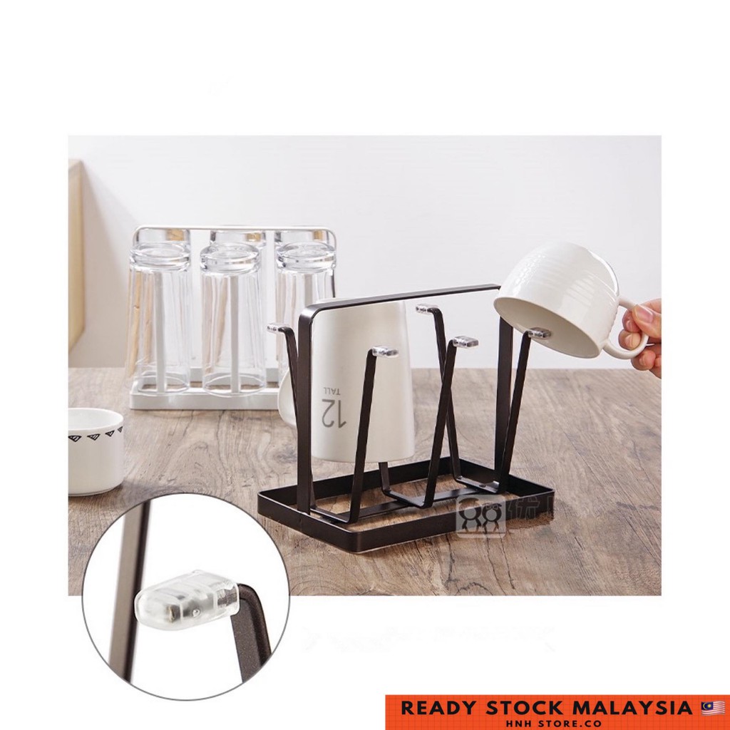 HNH Nordic Style Cup Storage Rack Drying Rack Draining rack Cup Glass holder with 6-cup hanger Rak Gelas Cawan