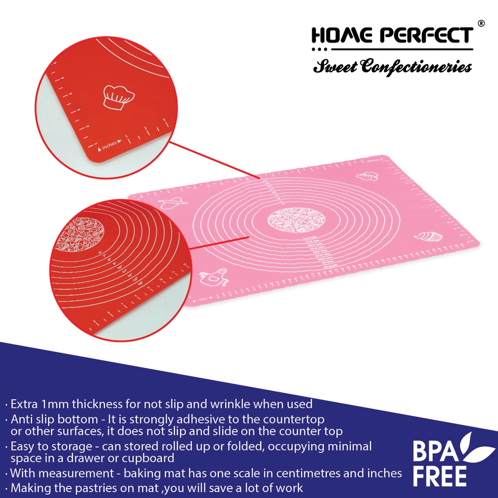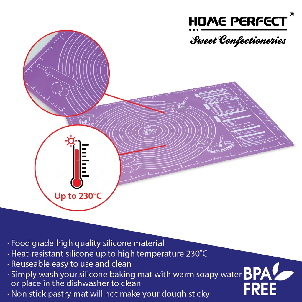 HOME PERFECT Silicone Baking Mat Dough Pad W/Measurement,Non-Stick Flour Rolling Mat,Tikar Pembakar, EXY-L622