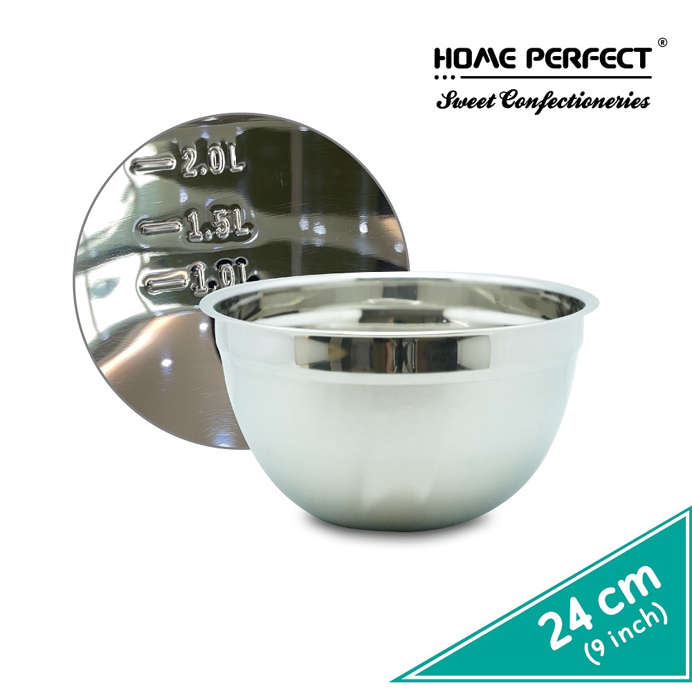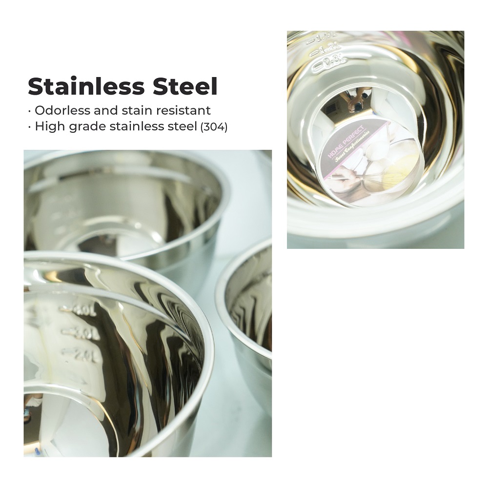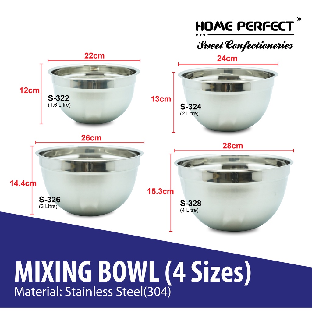 HOME PERFECT Deep Daigona Mixing Bowl With Measurement, Egg, Flour, Salad Bowl, Stainless Steel, S-322,S-324,S-326,S-328