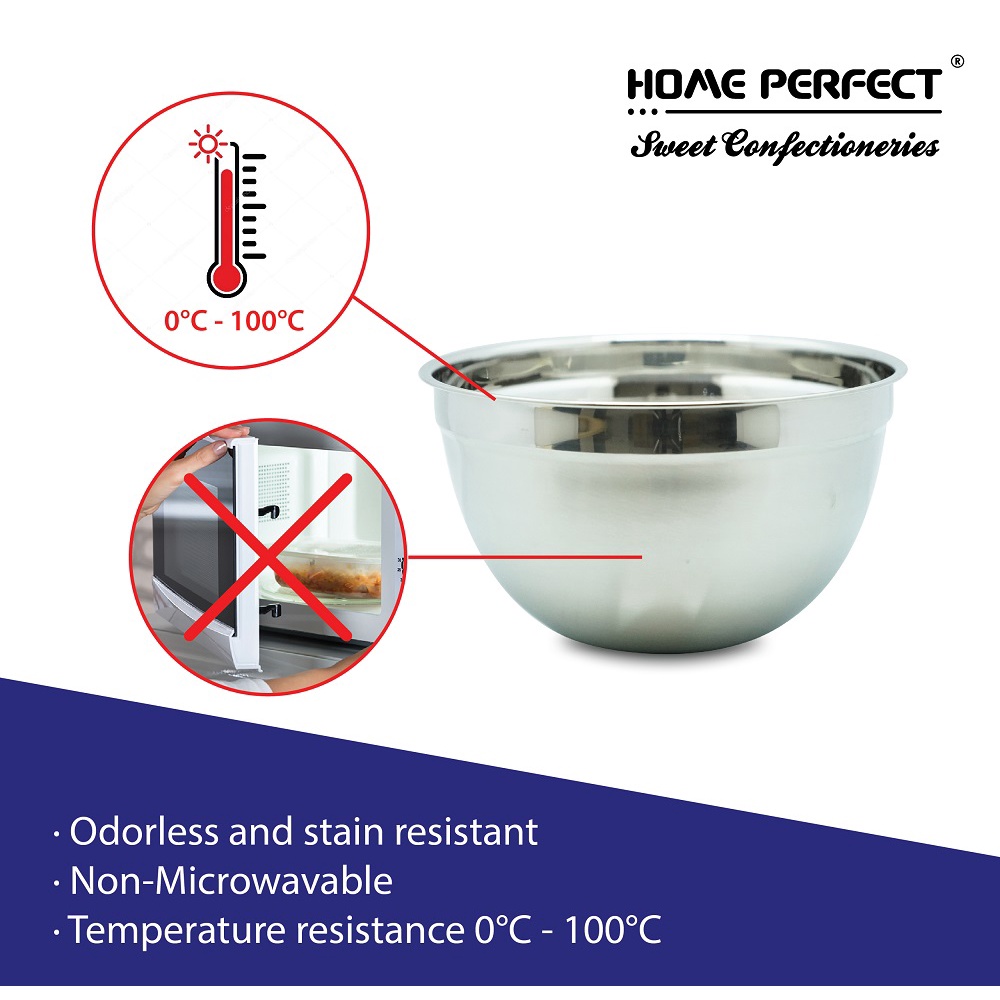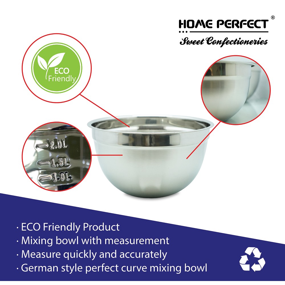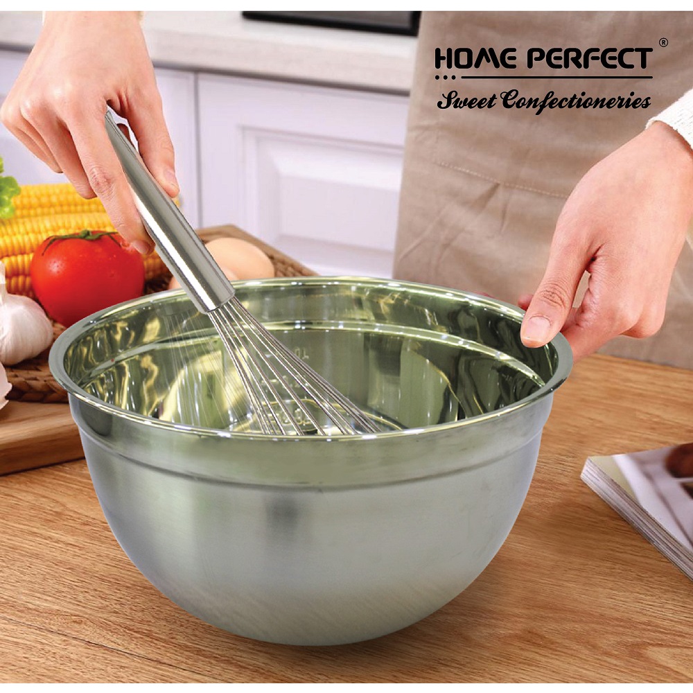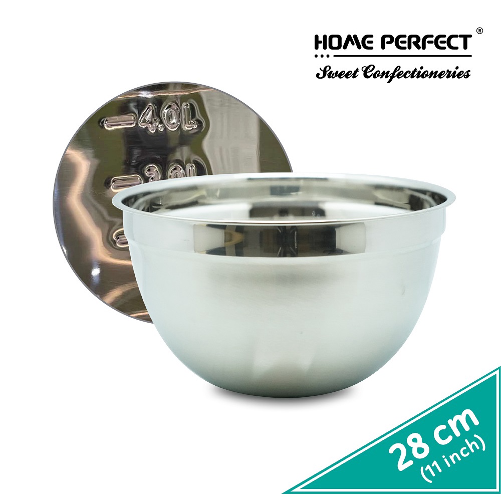 HOME PERFECT Deep Daigona Mixing Bowl With Measurement, Egg, Flour, Salad Bowl, Stainless Steel, S-322,S-324,S-326,S-328
