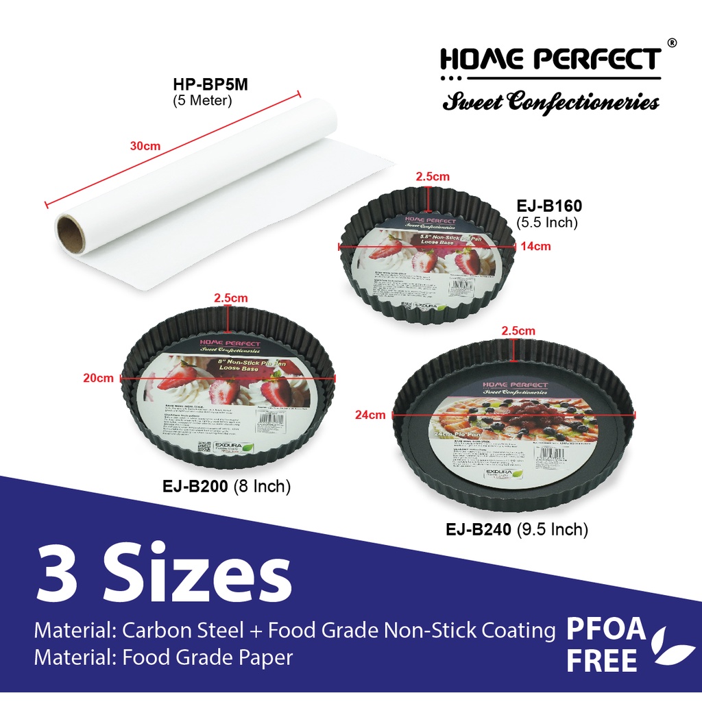 HOME PERFECT 5.5/8/9.5 Inch Non-Stick Loose Base Pie Pan With 3 Layers Coating,EJ-B200, EJ-B240, EJ-B160