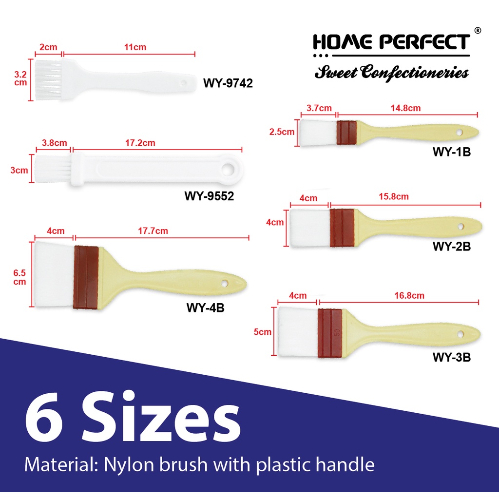 HOME PERFECT BBQ Grill Pastry Nylon Brush W/Plastic Handle,Butter Honey Sauce Oil Basting Brush,Berus,WY-1B, 2B, 3B, 4B