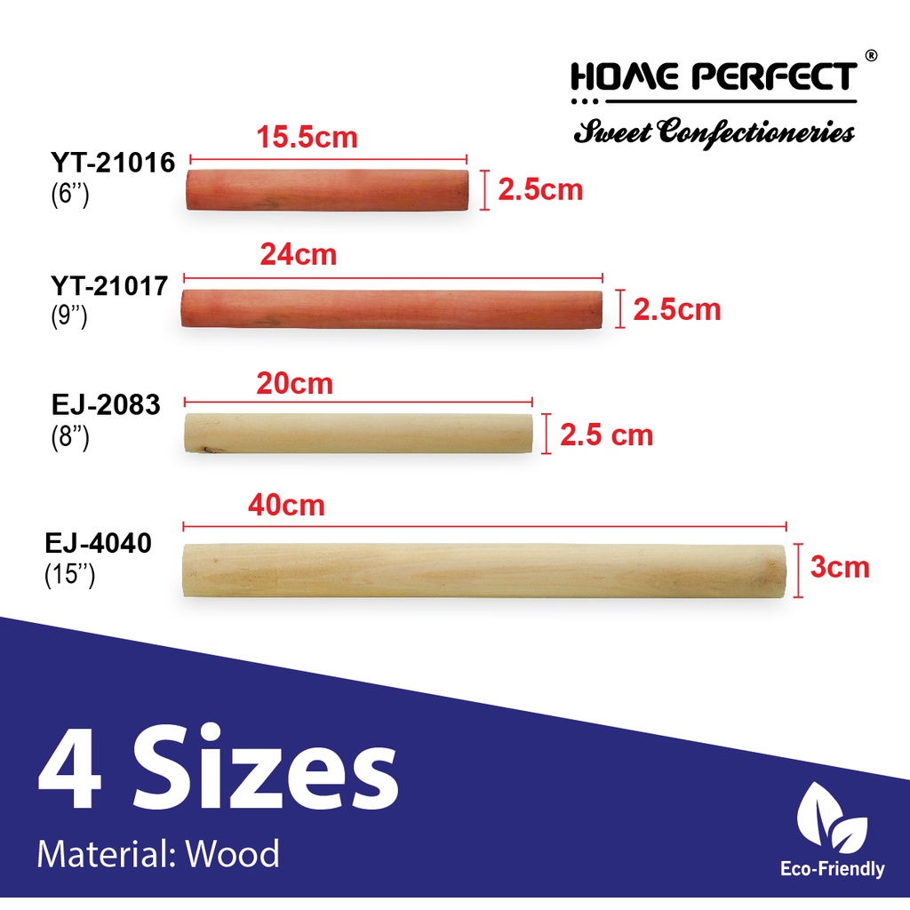 HOME PERFECT 6/8/9/15 Inch Wooden Baking Flat Rolling Pin,Non-Stick Dough Roller,Kayu Penggelek,EJ-2083,4040,YT-21016,7