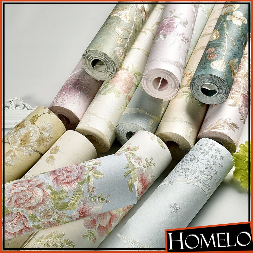 HOMELO 3D Modern Flower Solid Wall Stickers Removable Self Adhesive Wallpaper Bedroom TV Background Wall Room Decor 花纹壁纸