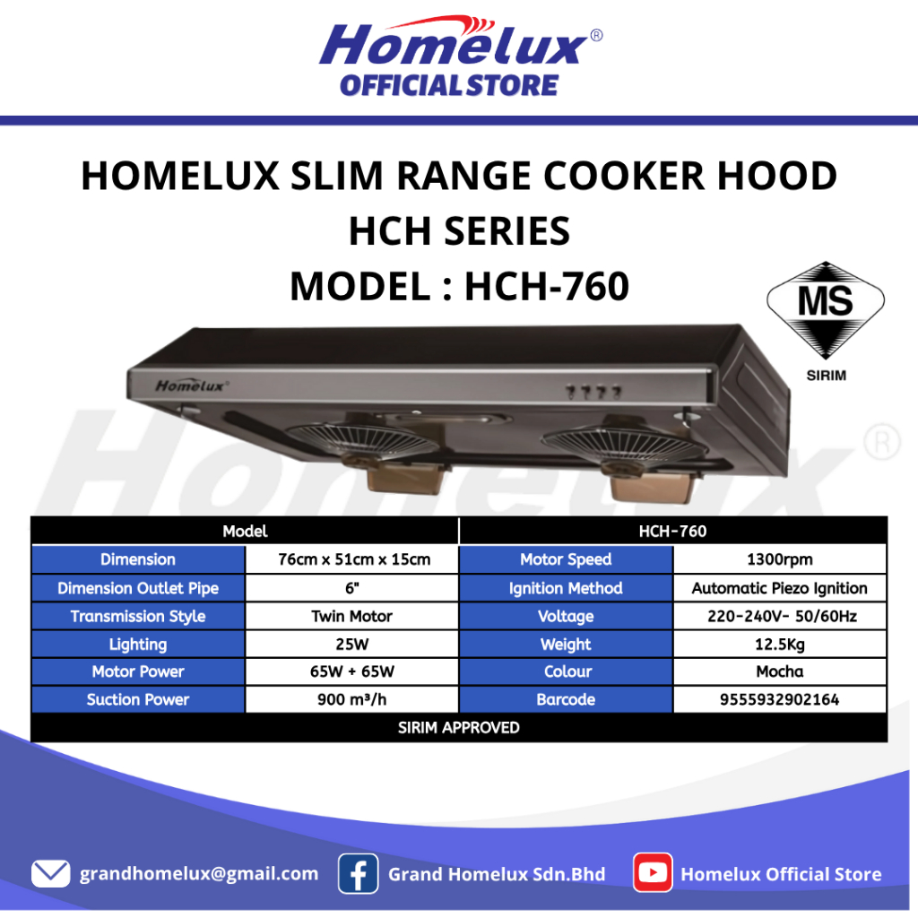 HOMELUX SLIM RANGE HOOD / COOKER HOOD HCH SERIES HCH-760