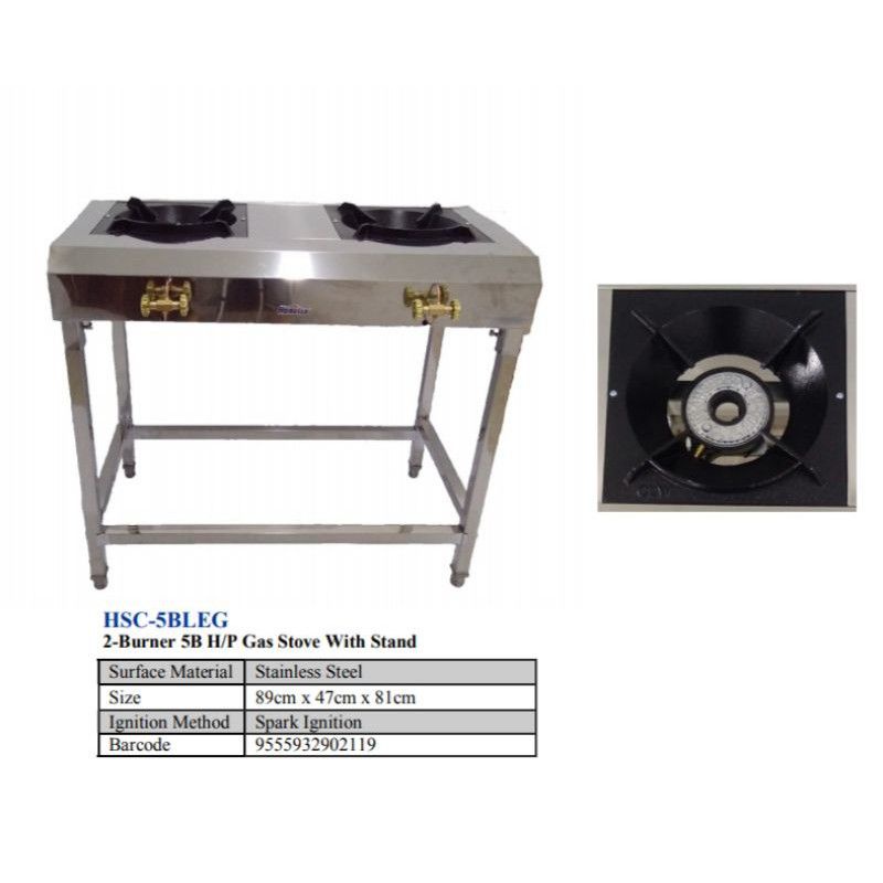 HOMELUX Stainless Steel (5B) High Pressure 2-Burner Seafood Standing Cooker / Commercial Standing Cooker (HSC-5BLEG)