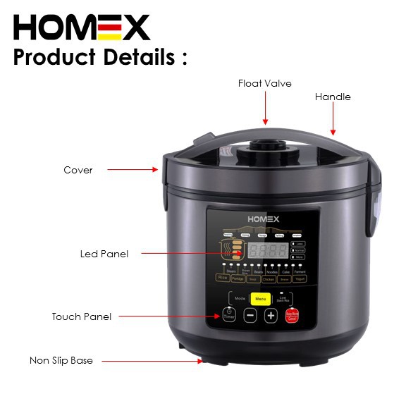 [𝟐 𝐘𝐄𝐀𝐑 𝐖𝐀𝐑𝐑𝐀𝐍𝐓𝐘] HOMEX 5L Rice Cooker RC-50 (14-In-1 Multi Functional Cooker with Non Stick Aluminium Inner Pot)