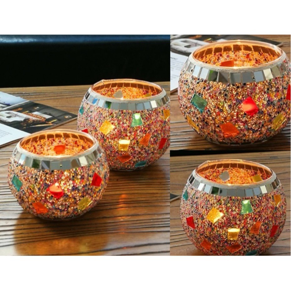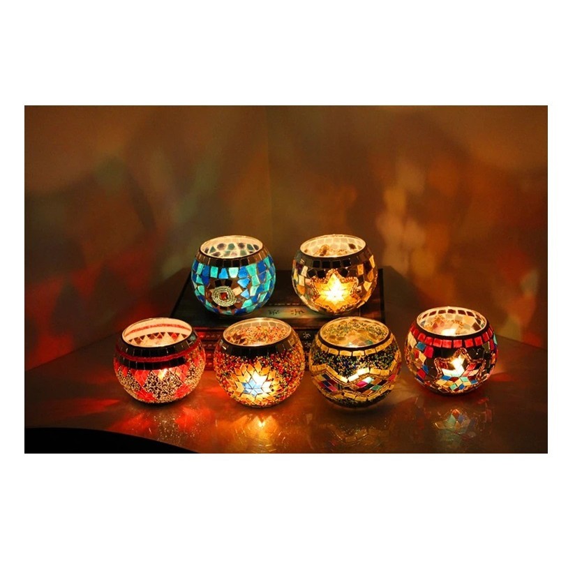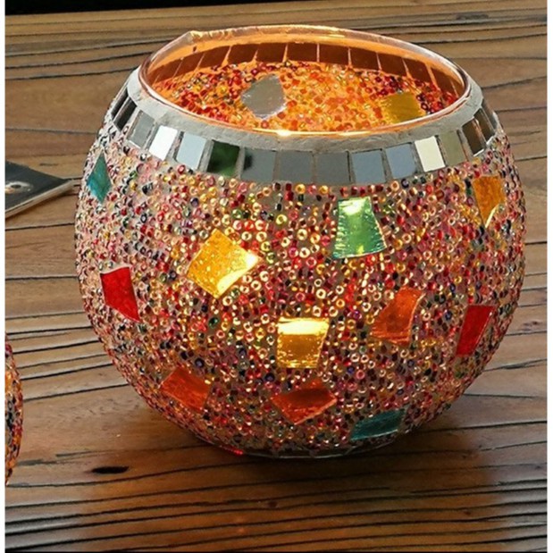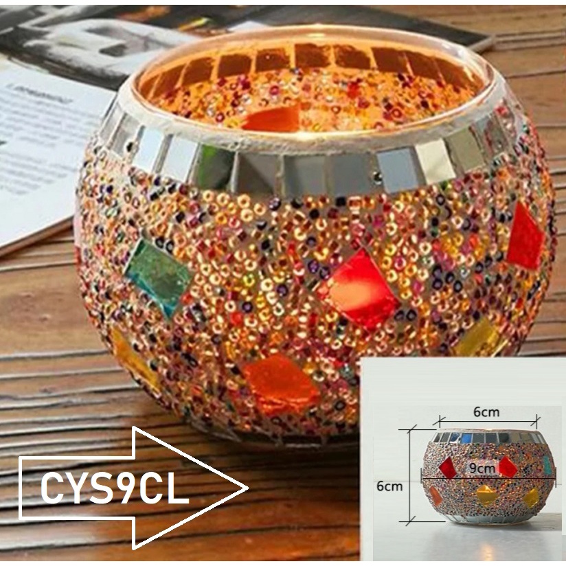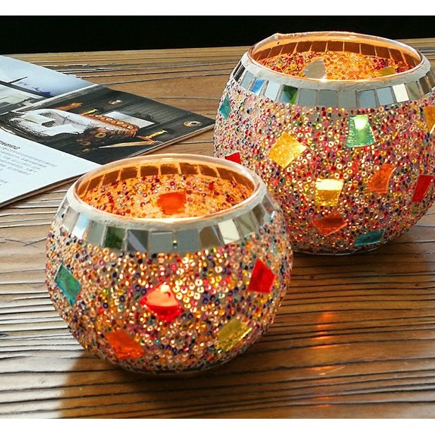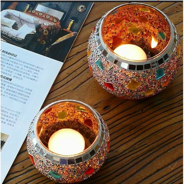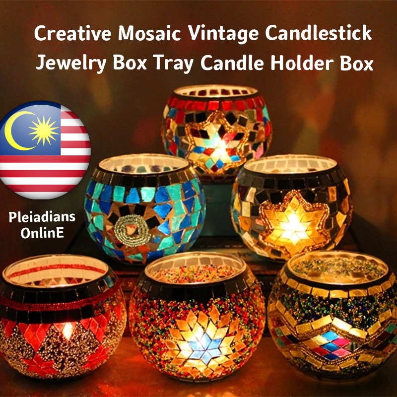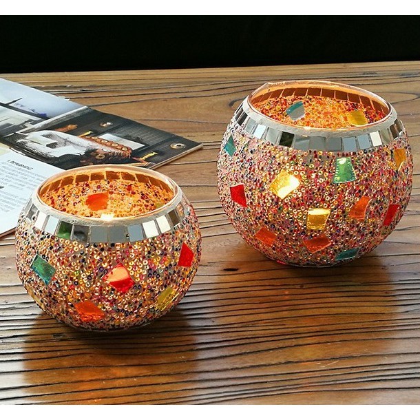 HOMIEE European Color Mosaic Candle Holder Lilin Holder Candlestick Box Storage Cystal Table