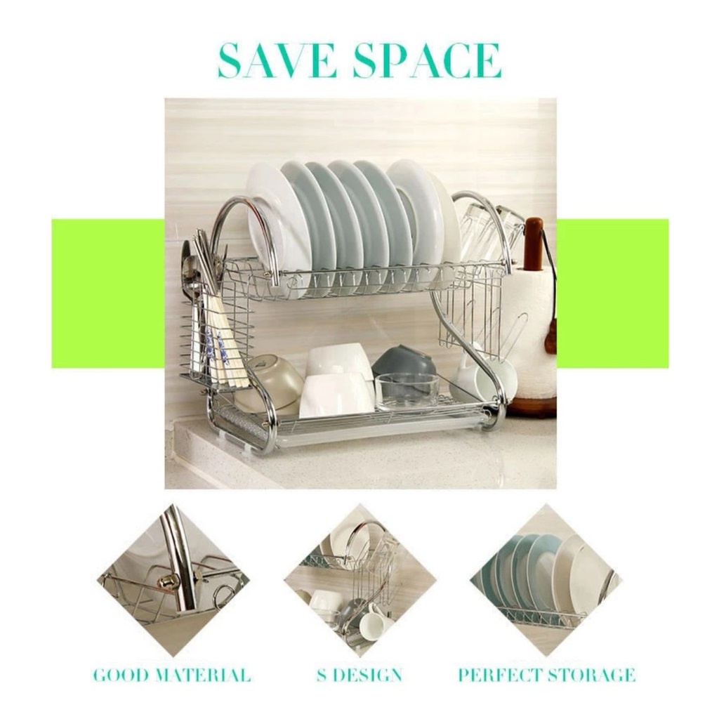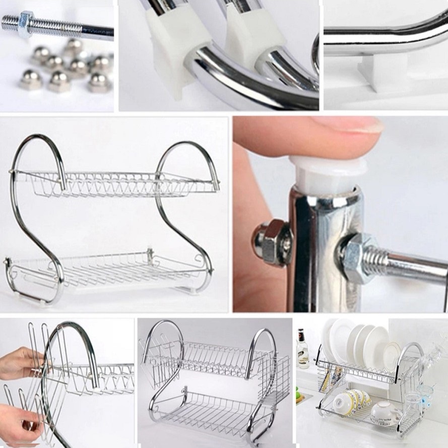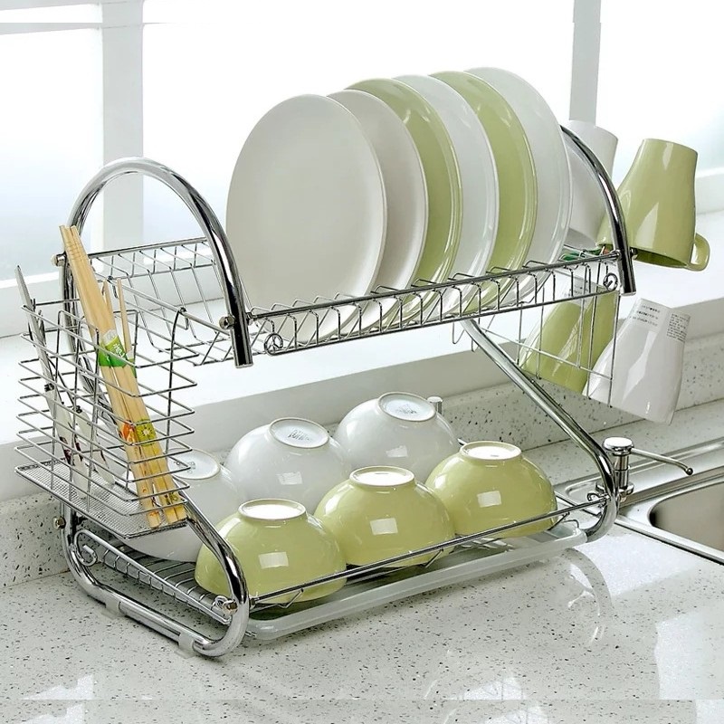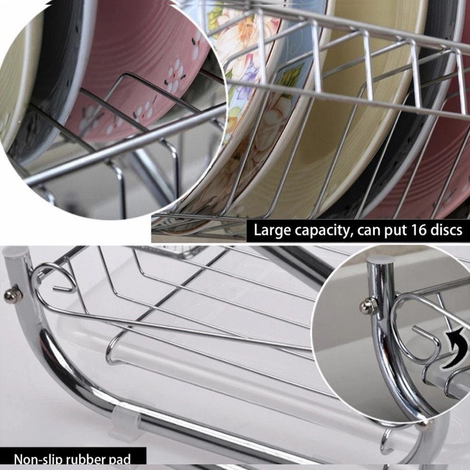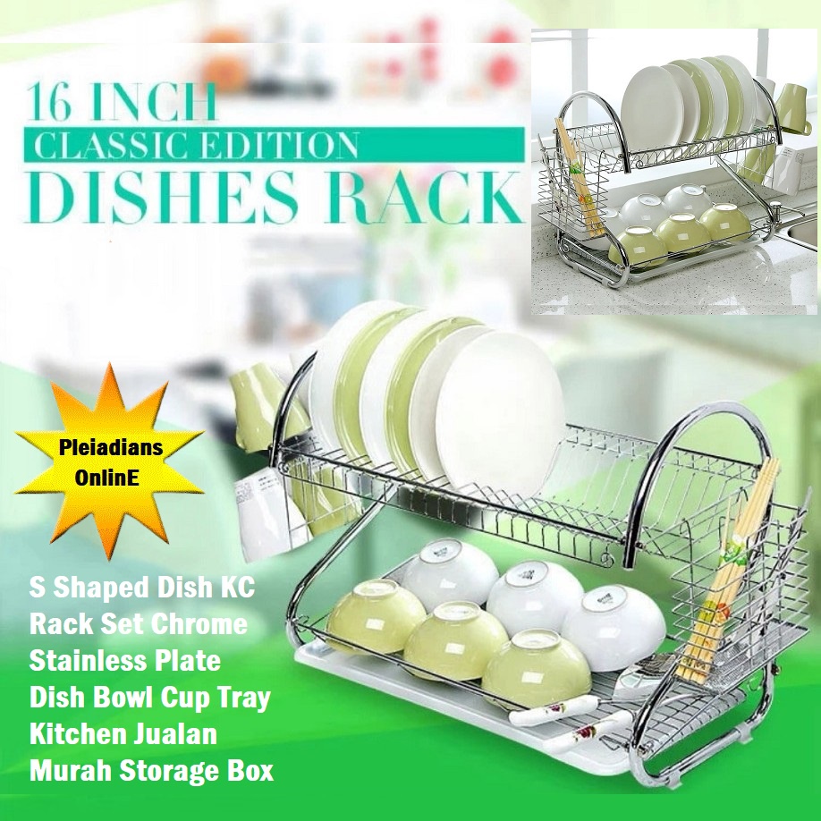 HOMIEE Shape Dish Rack Set KC Chrome Stainless Plate Dish Cutlery Cup Rack Tray Kitchen