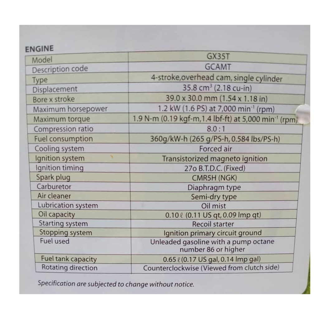 HONDA BACKPACK BRUSH CUTTER / GRASS CUTTER C/W 35CC GX35 ENGINES 4-STROKE