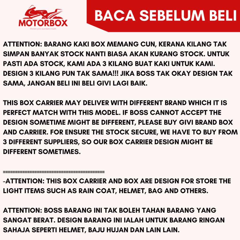 HONDA BEAT 110 FRIST MODEL REAR BOX MONORACK BOX CARRIER HEAVY DUTY PVC KOTAK BESI BELAKANG BEAT110 LAMA OLD BAET V1V2