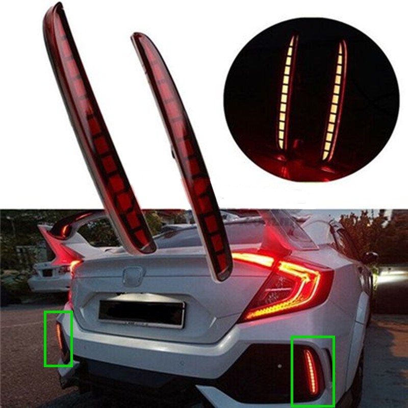 HONDA CIVIC FC/ FK8/ 2016-2021 Type-R Rear Bumper Safety Brake Light Reflector with Sequential Turn Signal LED (RED)