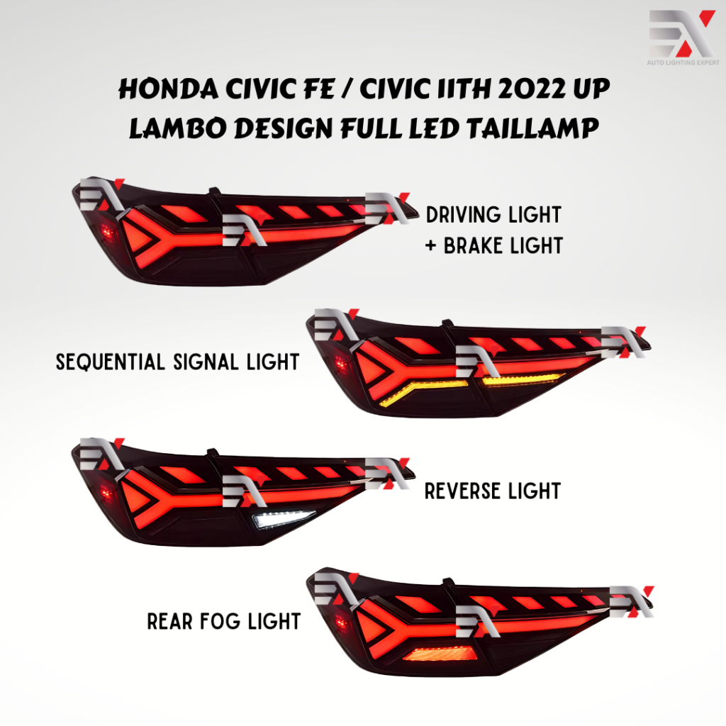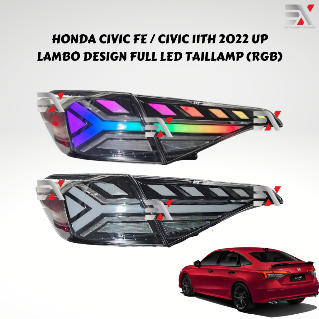 HONDA CIVIC FE LED TAIL LAMP - LAMBO DESIGN (RGB) - RUNNING SIGNAL - SCANNING WELCOME MODE
