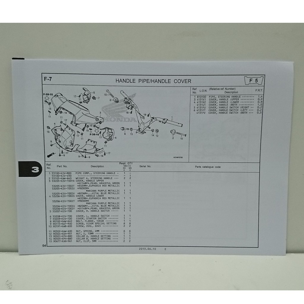 HONDA EX5 DREAM 110 PARTS CATALOGUE JUNE 2013