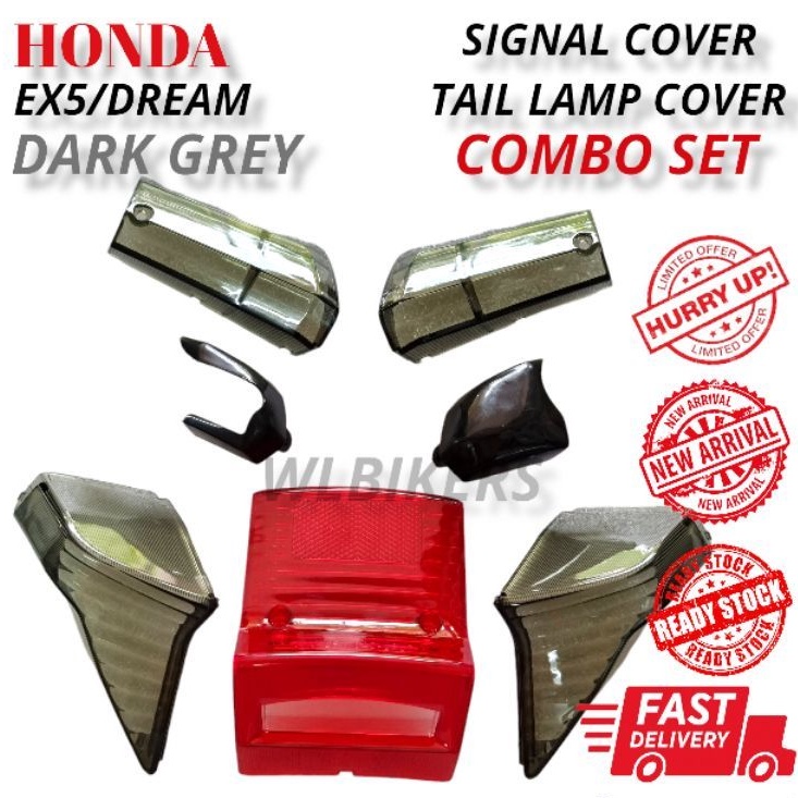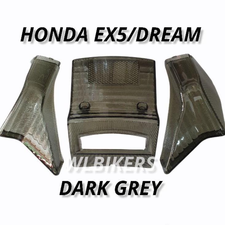 HONDA EX5 HIPOWER EX5 DREAM FRONT SIGNAL BRAKE TAIL LAMP COVER COMPLETE SET DARK GREY BELAKANG REAR LIGHT LAMPU -SMOKE-
