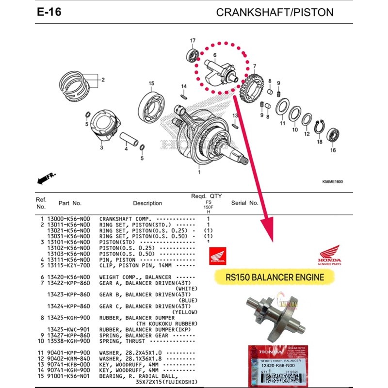 HONDA RS150 BALANCER ENGINE WEIGHT 100% ORIGINAL HONDA (13420-K56-N00)