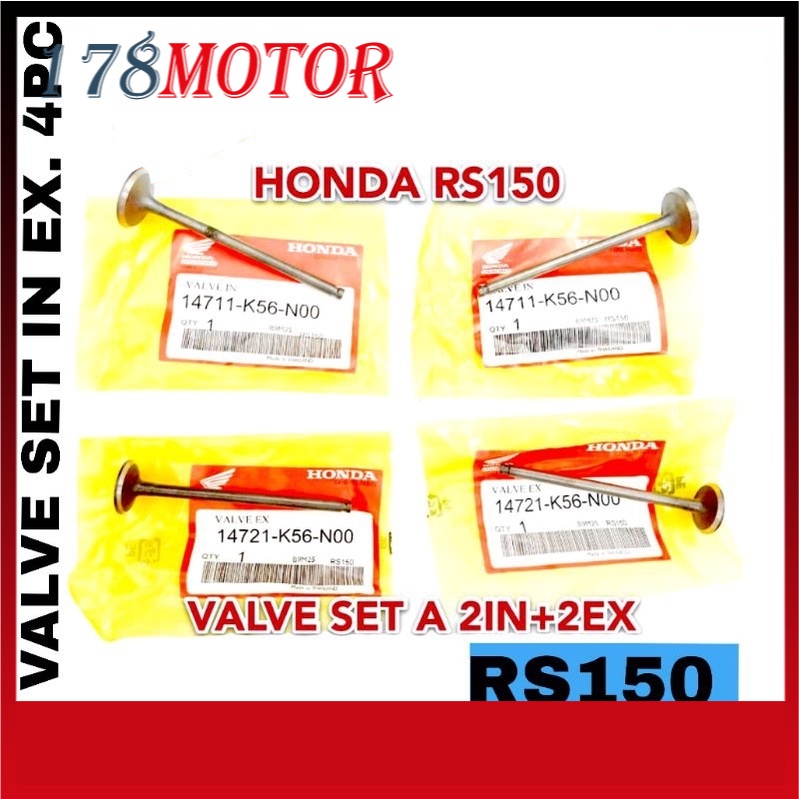 HONDA RS150 VALVE SET IN EX . 4PC + VALVE SEAL 4PC