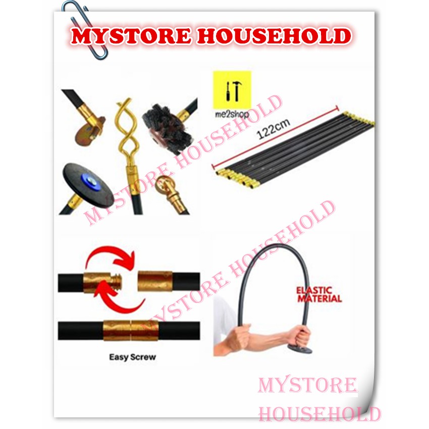 HOROBIN Sewage Cleaning Rod Polypropylene 4' ( 10Pcs ) With Accessories Drain Plungers Cleaners Remove Clog