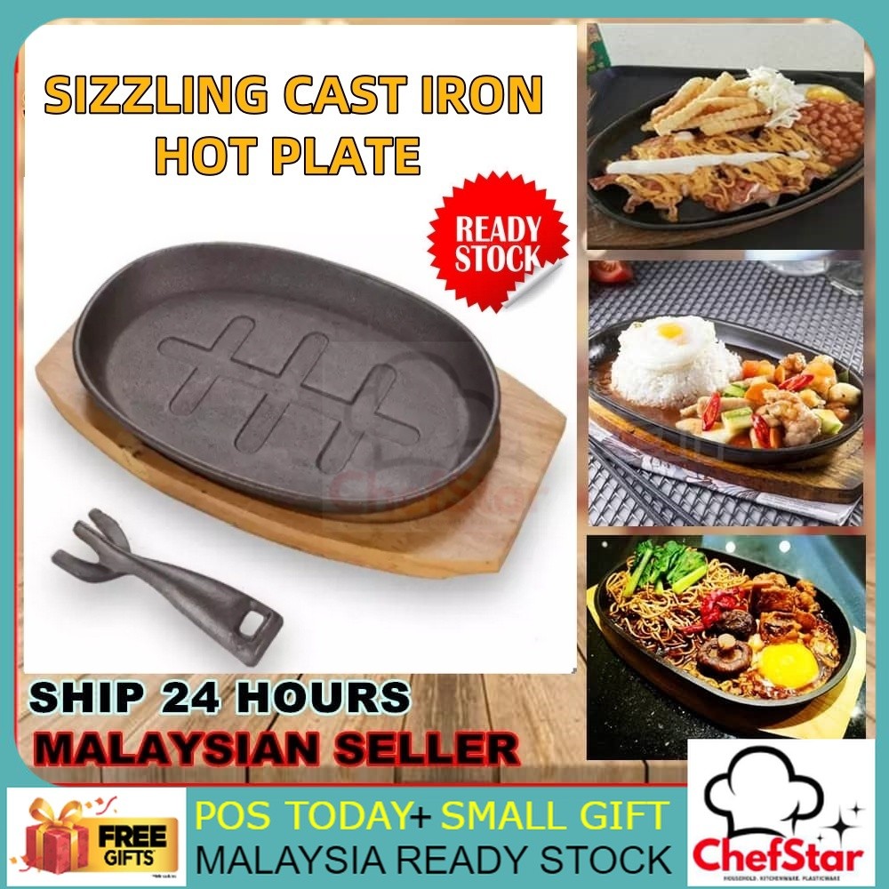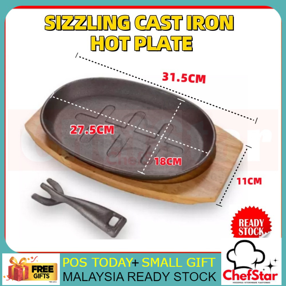 HOT PLATE SET Sizzling Plate Cast Iron Hot Plate With Handle & Wooden Base Hot Plate Noodle