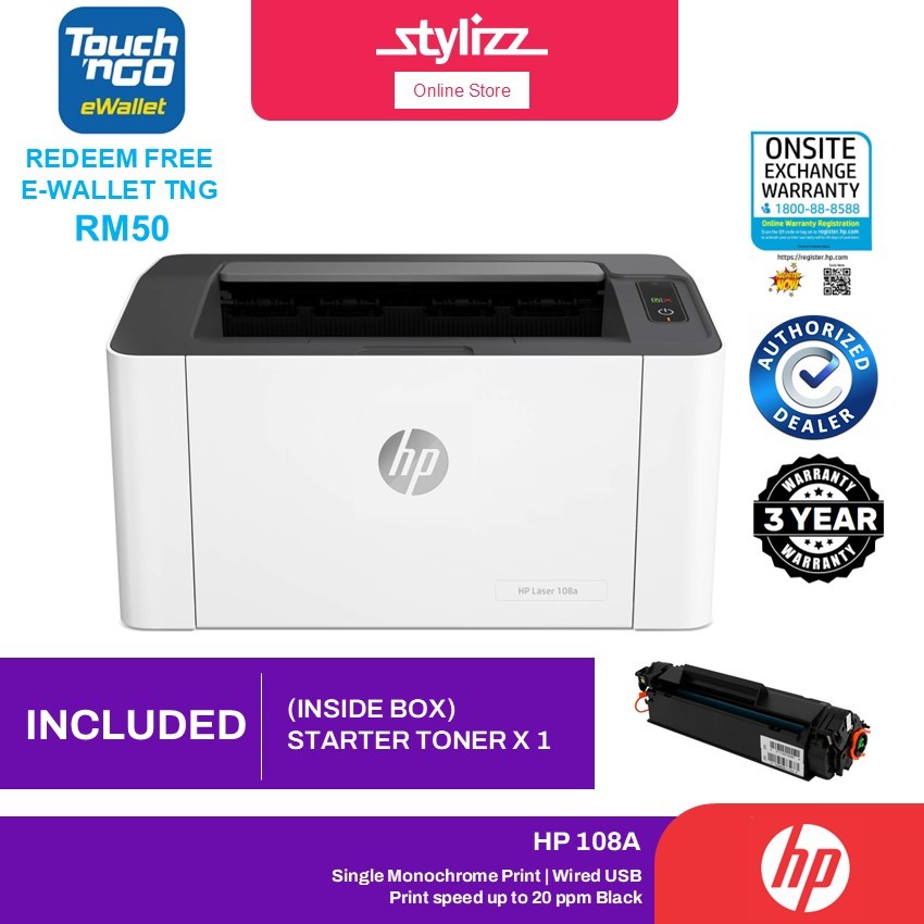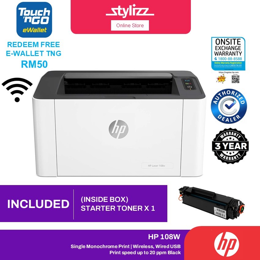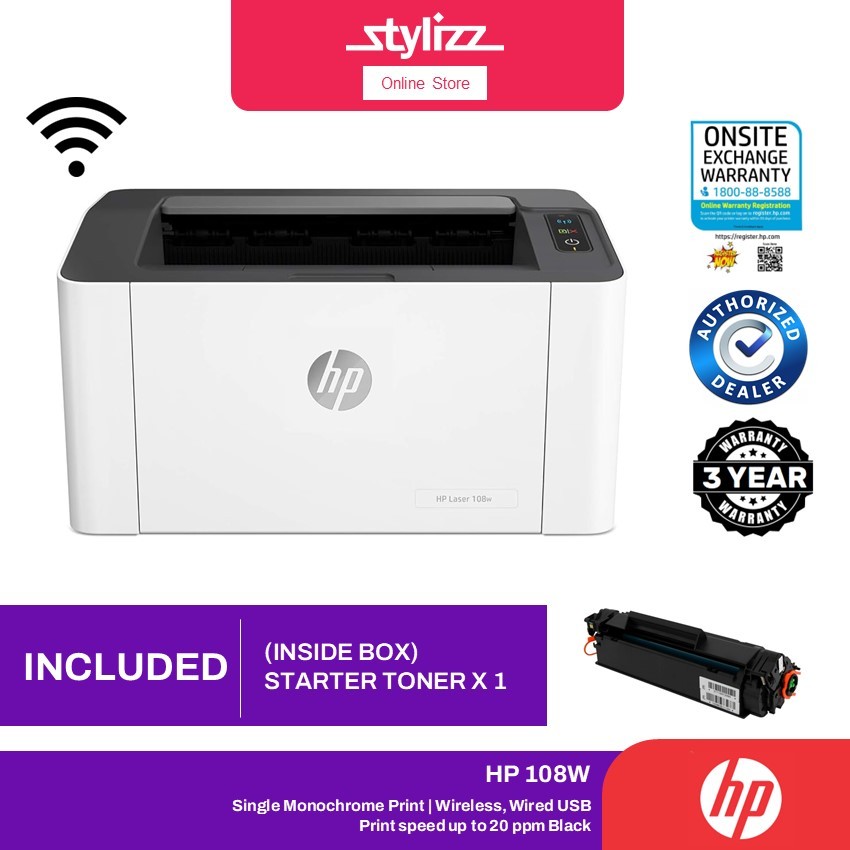 HP 108A | 107A Wired / 108W Wireless Monochrome Single Function Laser Printer Print Only
