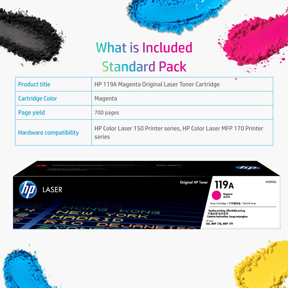 HP 119A Original Laser Toner Cartridge - W2090A Black/W2091A Cyan/W2092A Yellow/W2093A Magenta