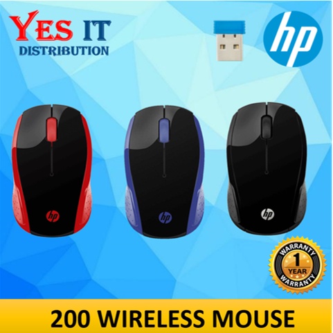 HP 200 2.4Ghz 1000 DPI Optical Wireless Mouse Plug n Play ( Red / Blue / Black )