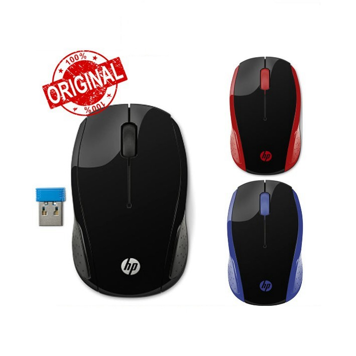 HP 200 Wireless Mouse USB Optical with Contour Design & 1,000 DPI Optical Sensor 2.4 GHz - Black/Red/Blue