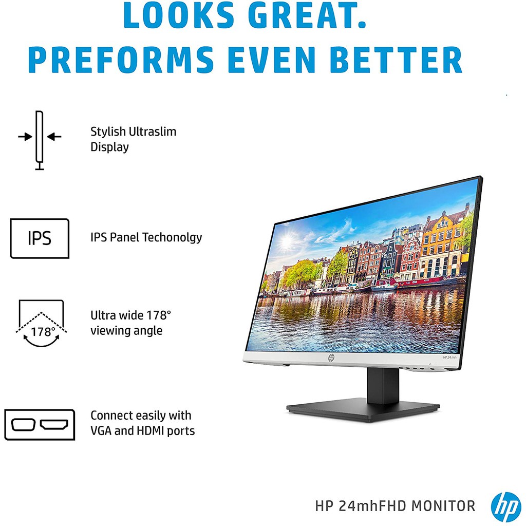 HP 24mh Full HD Monitor - IPS LED Backlit/ 75Hz/ 5ms GtG/ Ultra Slim Design/ Built-in Speaker (23.8") 7XM23AA