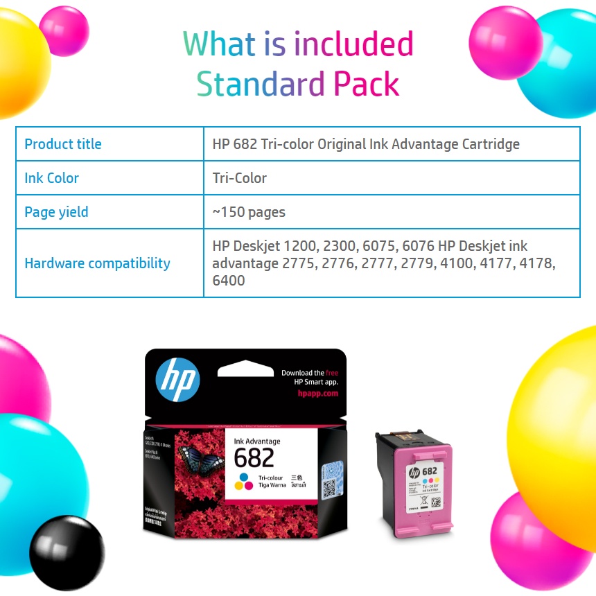 HP 682 Black OR Tri-Color Original Ink [3YM77AA & 3YM76AA]