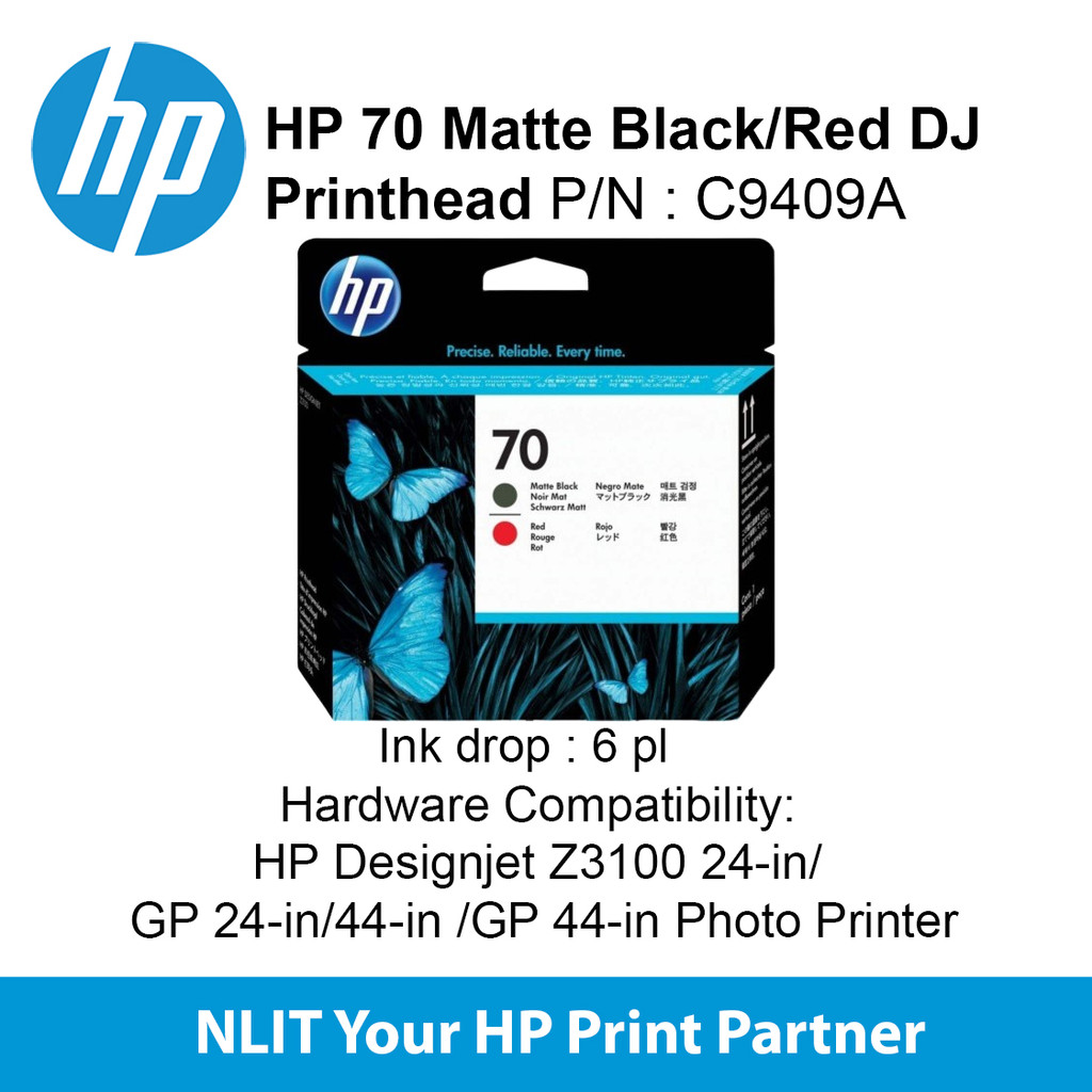 HP 70 Matte Black and Red Printhead C9409A