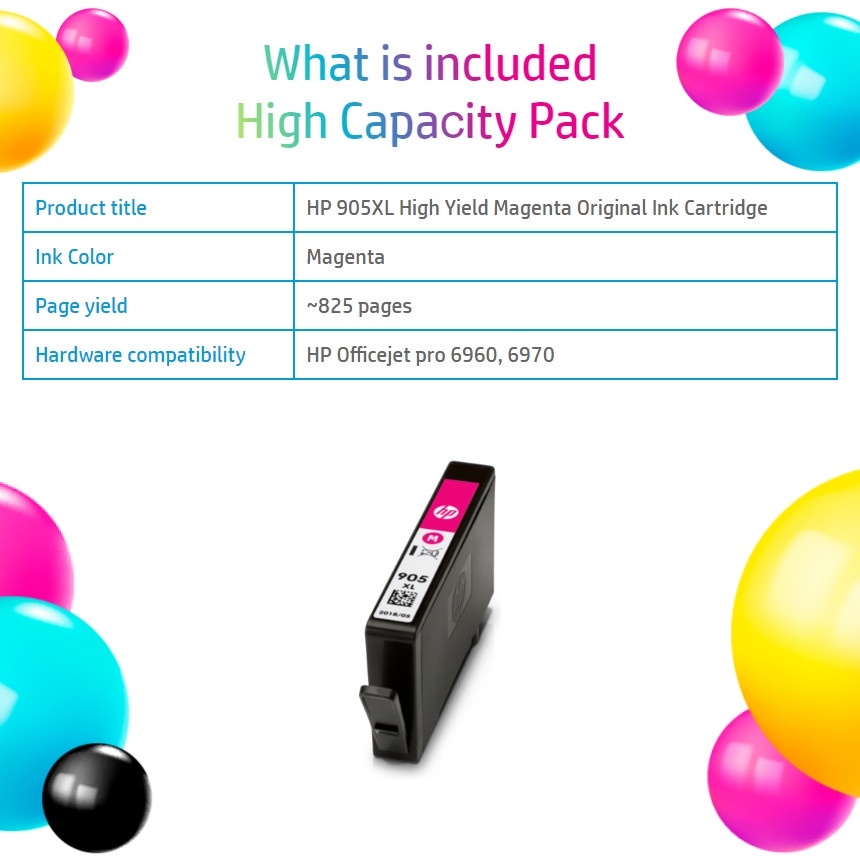 HP 905XL Original BK/C/M/Y Ink Cartridge T6M17AA/T6M13AA/T6M09AA/T6M05AA