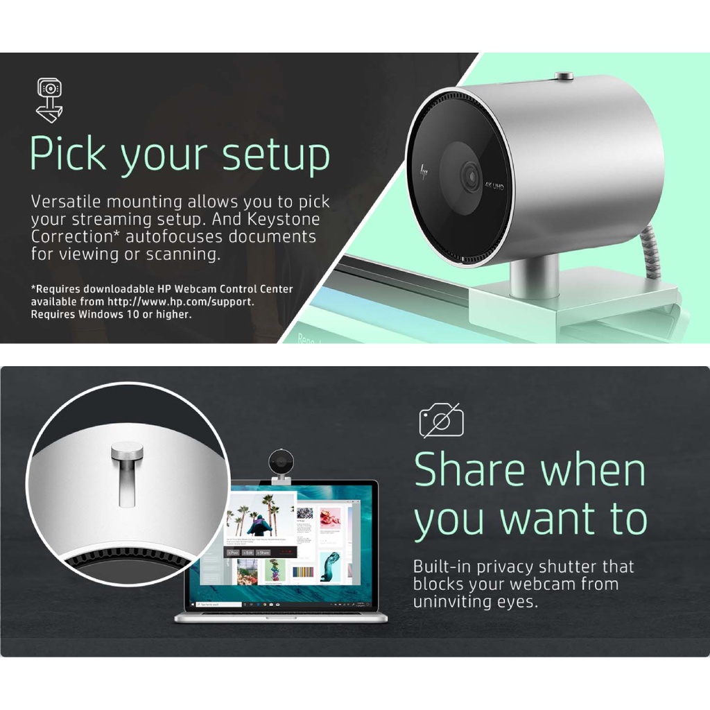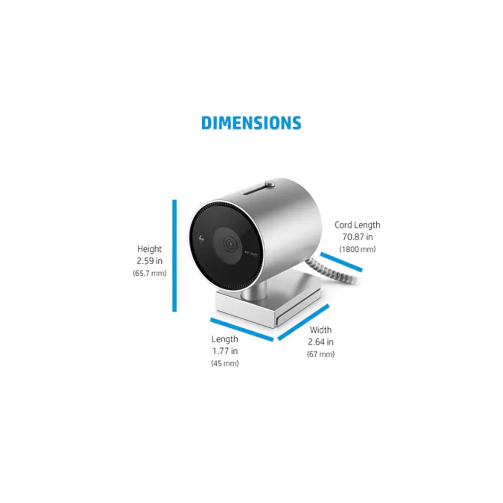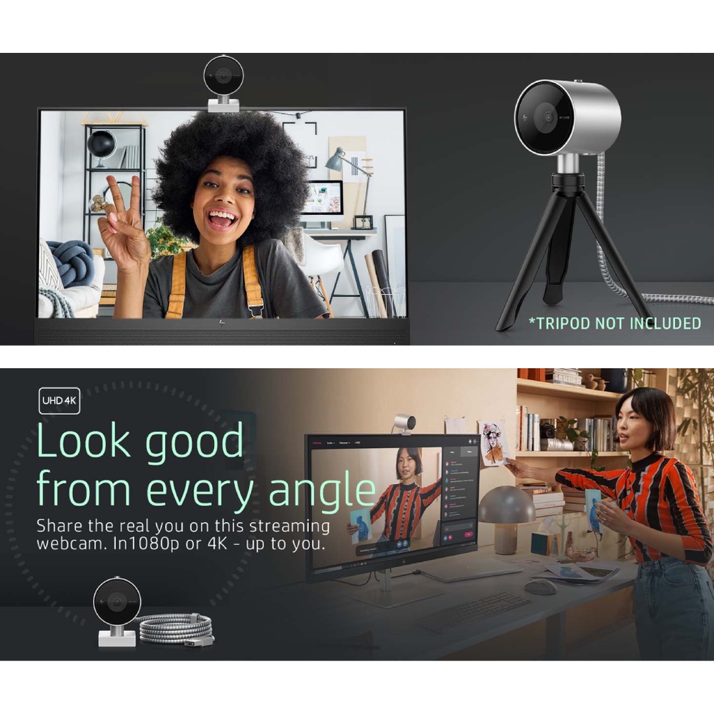 HP 950 4K UHD Resolution Webcam - 103 Degree Field of View , AI Face Framing and Universal Mounting Clips
