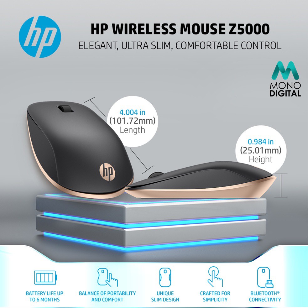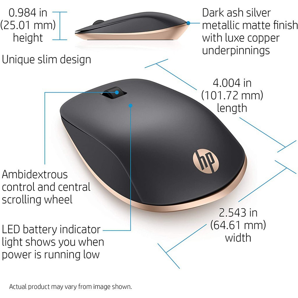 HP Bluetooth Mouse Z5000 Silver BT Slim with LED Battery Indicator Light (W2Q00AA)