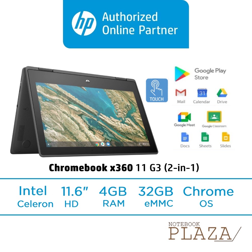HP Chromebook x360 11 G3 Touch Screen 2-In-1 Laptop - Gray (11.6") Black / Chrome OS/ Black/Convertible - 43N32PA