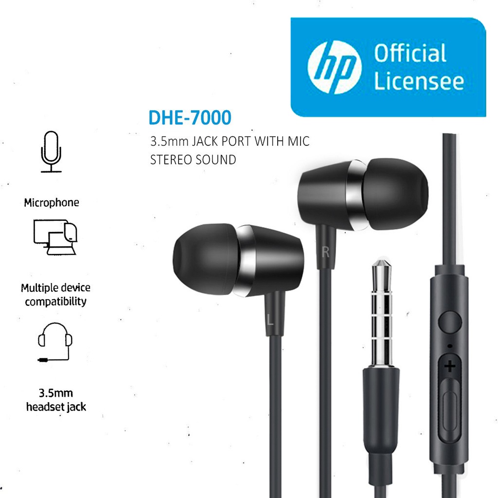 HP DHE-7000 In-Ear Headset with Mic 3.5MM Audio Jack similar Wired Earbuds C17 H17 XG-120 Gamming Earbuds XF06