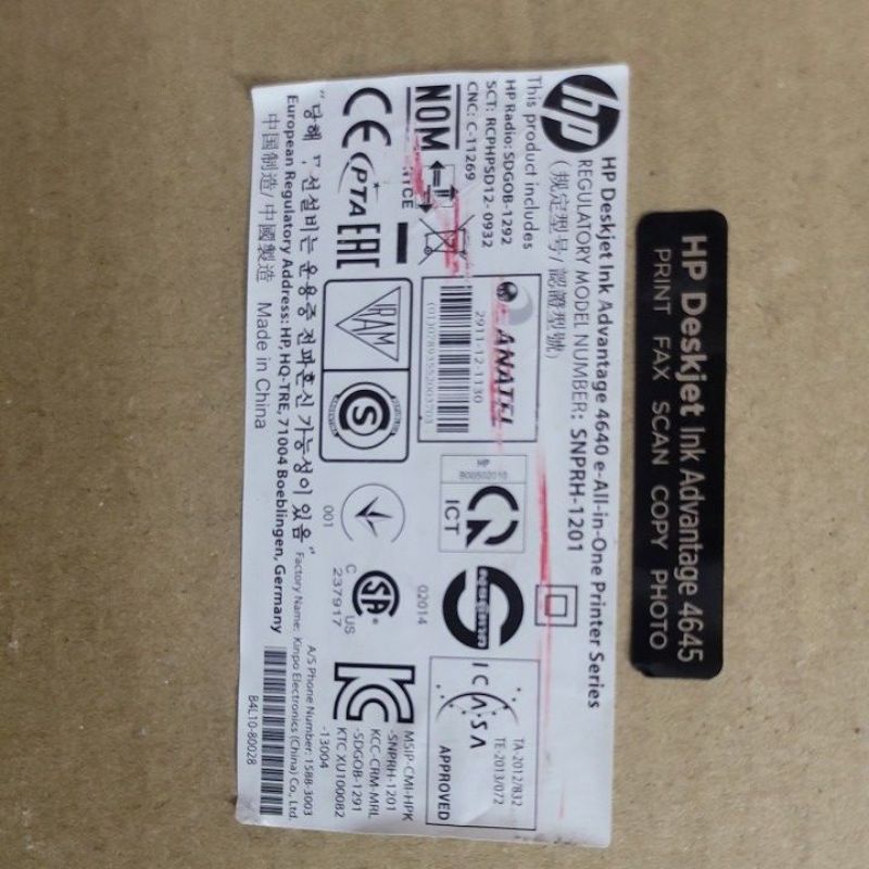 HP Deskjet lnk Advantage 4645 e-all-in-one printer series SNPRH-1201 Mainboard Logc Board, B4L03-80003_C
