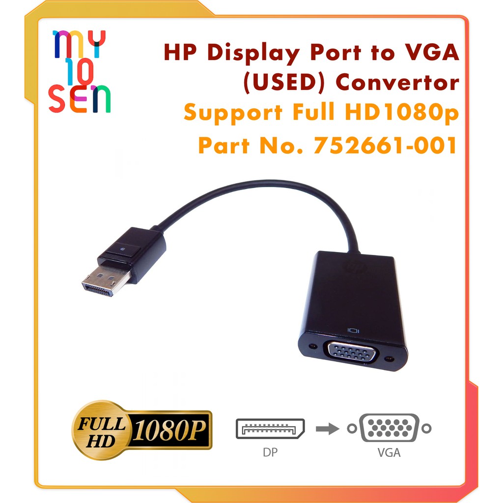 HP DisplayPort To VGA Adapter P/N. 752661-001 FullHD 1080p for PC Komputer Laptop Notebook