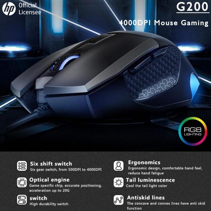 HP G200 USB WIRED BACKLIT OPTICAL GAMING MOUSE