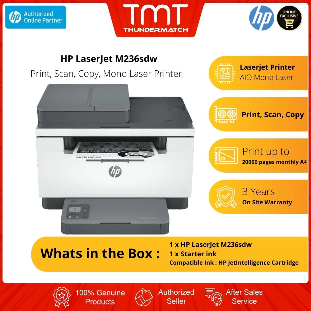 HP LaserJet M236sdw AIO Multi Function Mono Laser | Print, Scan Copy | Feeder | 29ppm | 600x600dpi | Duplex | 3Yrs Wrnty