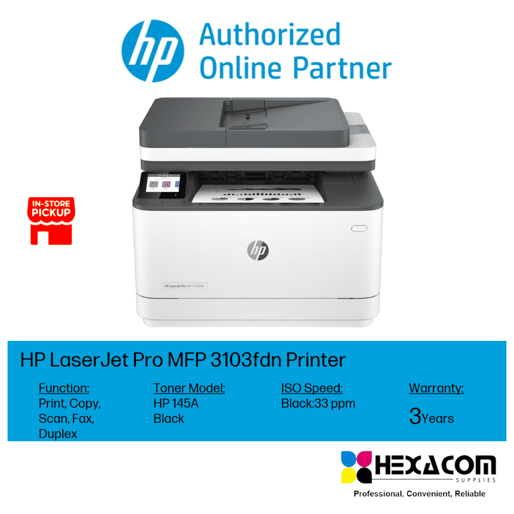 HP LaserJet Pro MFP 3103FDN network /MFP 3103FDW wireless Printer (Print/Scan/Copy/Fax/Duplex/Wifi)