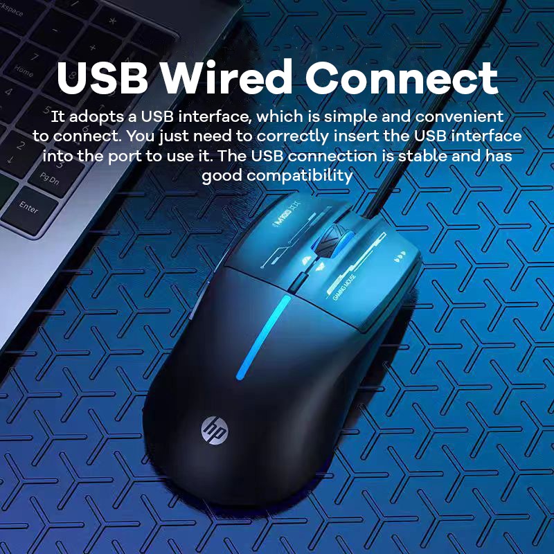 HP M100 Silent Gaming Mouse 4 Level DPI Adjustment RGB Lighting Effect Silent Wired Gaming Mouse