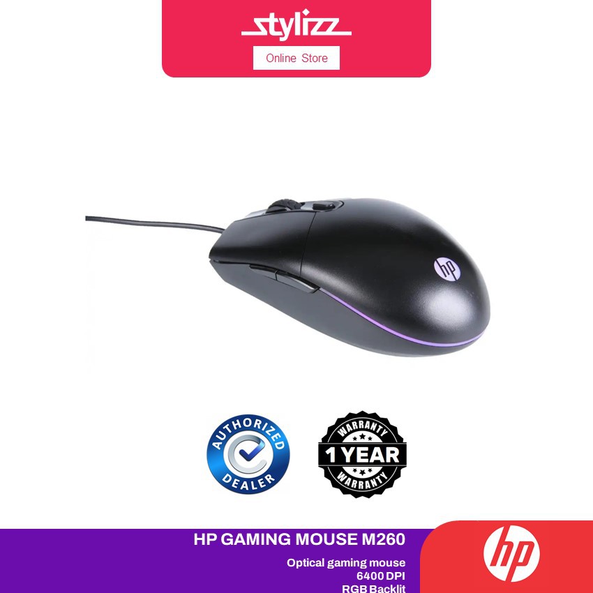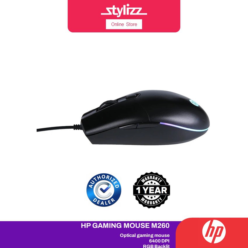 HP M260 WIRED MOUSE BLACK GAMING MOUSE 800-6400 DPI ADJUSTABLE 5 KEY HHP-M260(B)