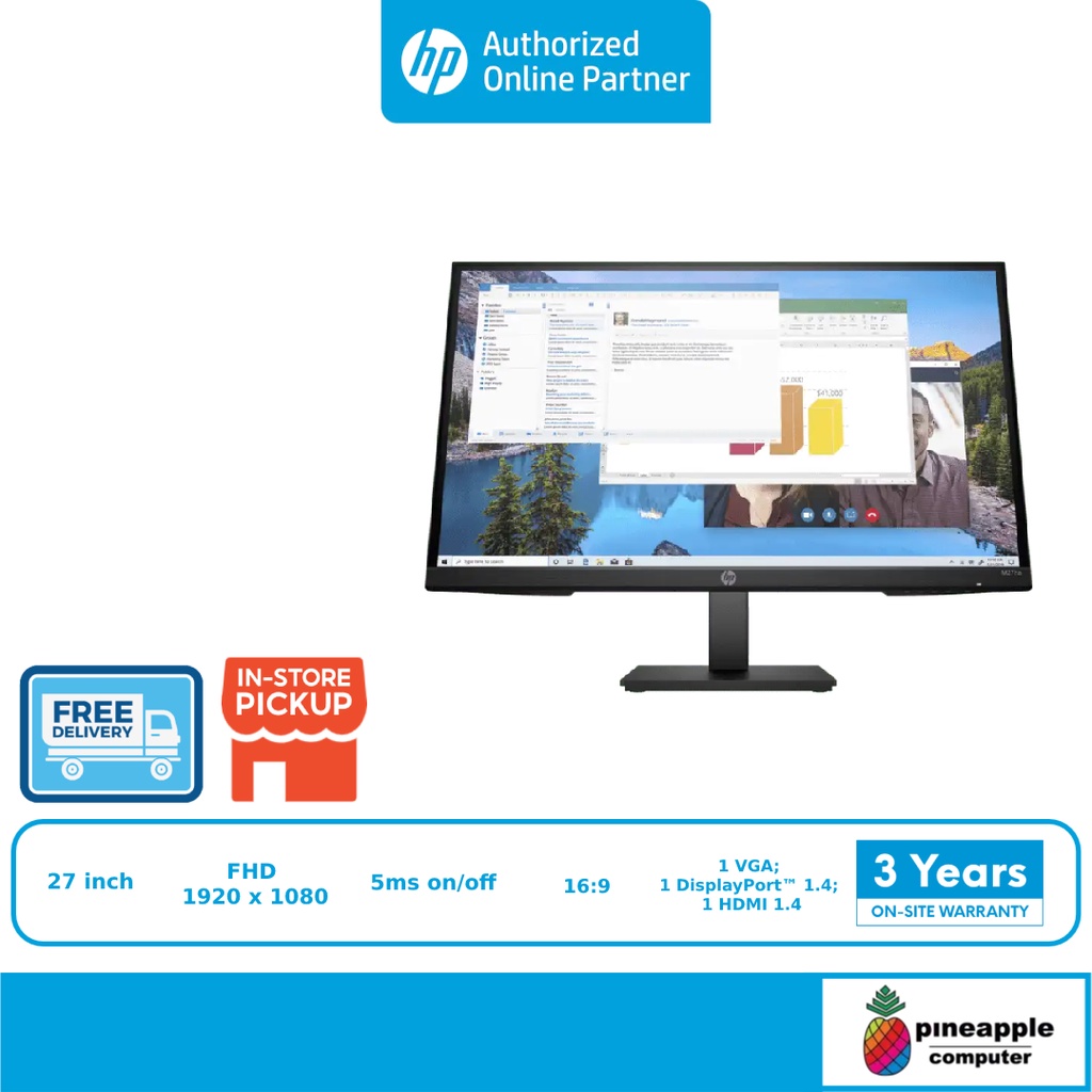 HP M27ha Monitor | 27" Inch | FHD (1920 x 1080 @ 60 Hz) | IPS Panel | 5ms on/off | Display Port | HDMI | VGA | 3-Years Warranty