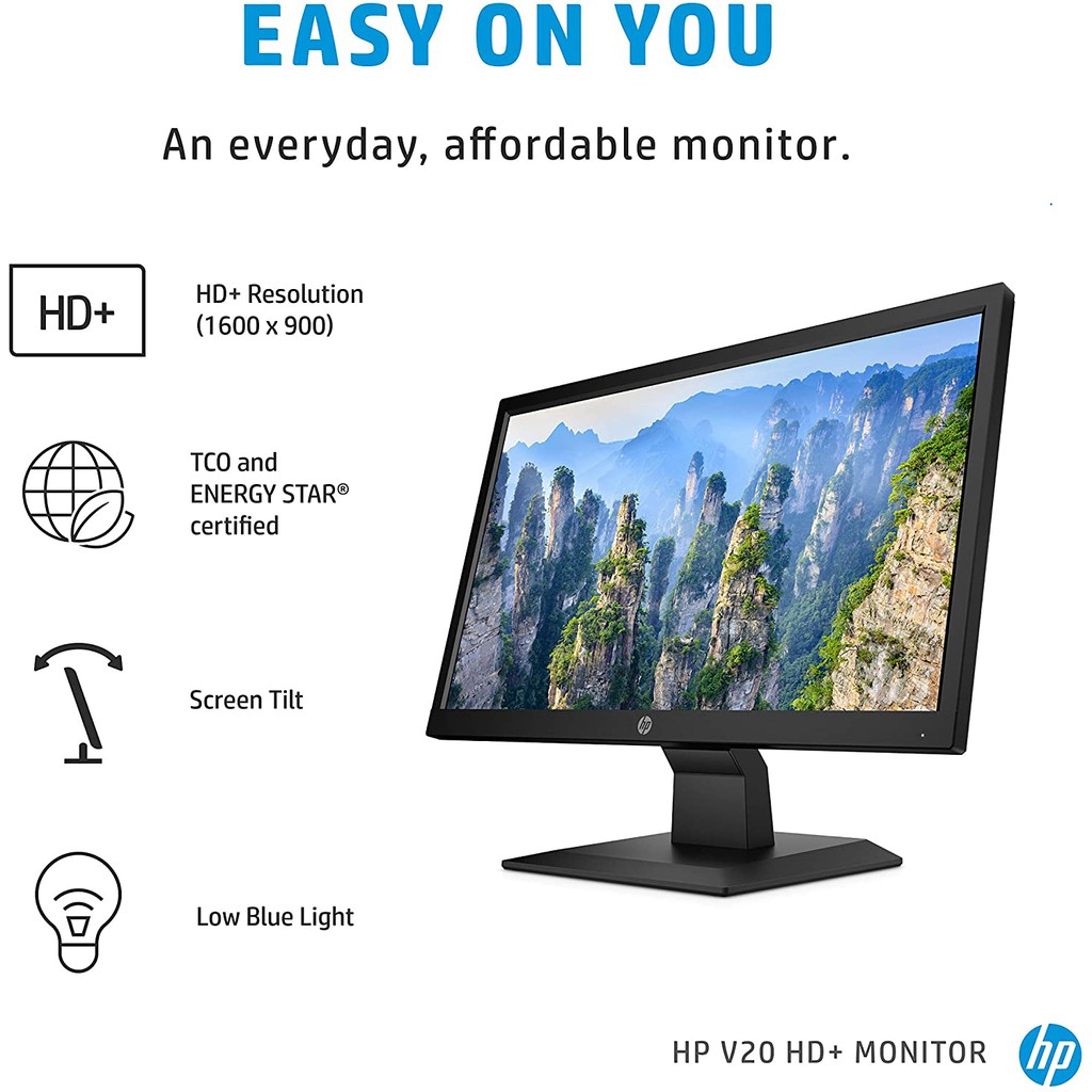 HP Monitor V20 LED Backlit HD+ Monitor Anti Glare 1H849AA Support CCTV Camera (19.5")