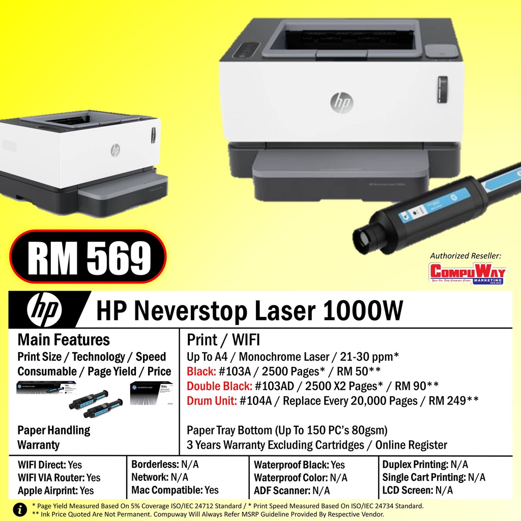 HP NEVERSTOP LASER 1000W PRINTER