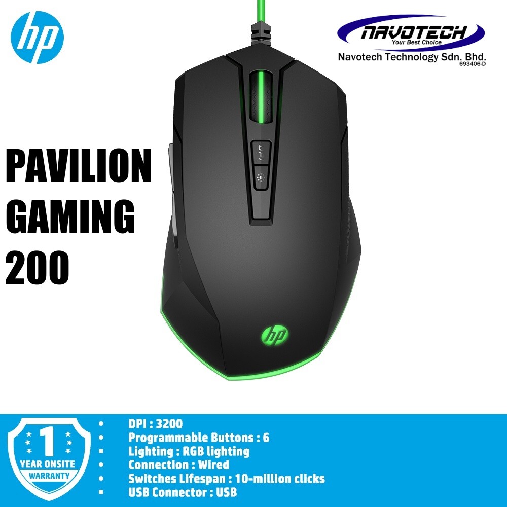HP Pavilion Gaming Mouse 200 Wired USB Pixart Optical Gaming Sensor (3200 DPI) 5JS07AA