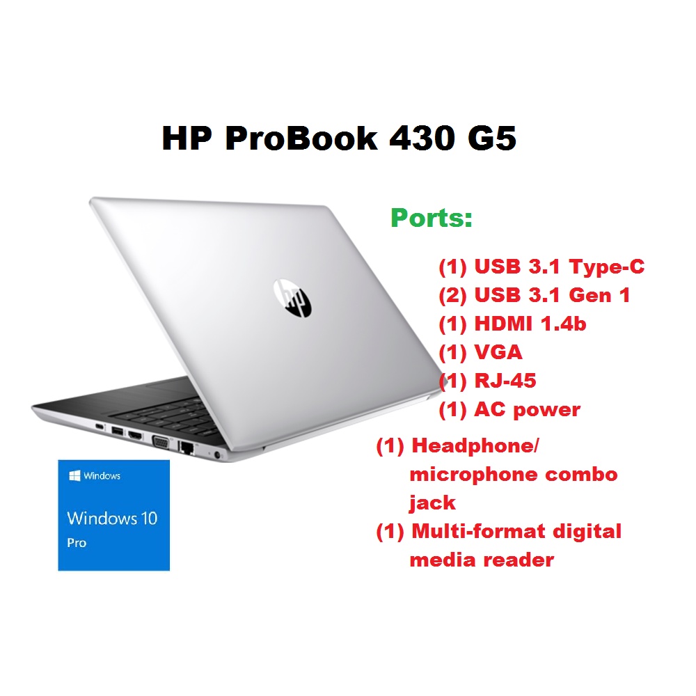 HP ProBook 430 G5 (Core i5-8250U, 8GB RAM, Windows 10 Pro, Intel UHD Graphics)