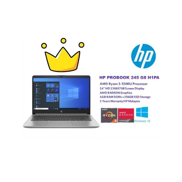 HP Probook 245 G8 {14 inch 1366x768 HD Screen} AMD Ryzen 3 5300u (AMD Radeon Graphics)
