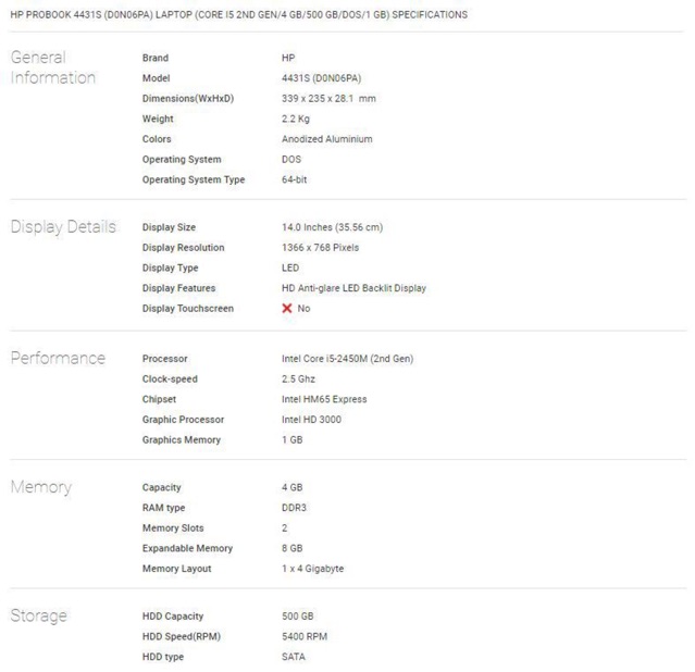 HP Probook 4431S Laptop (Core i5 2nd Gen/4GB/500GB)