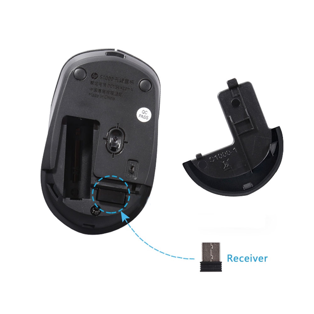 HP S1000 Silent Wireless Mouse 1600dpi Ergonomic 2.4G USB Optical Portable Mini Mouse for PC Computer Laptop Mice